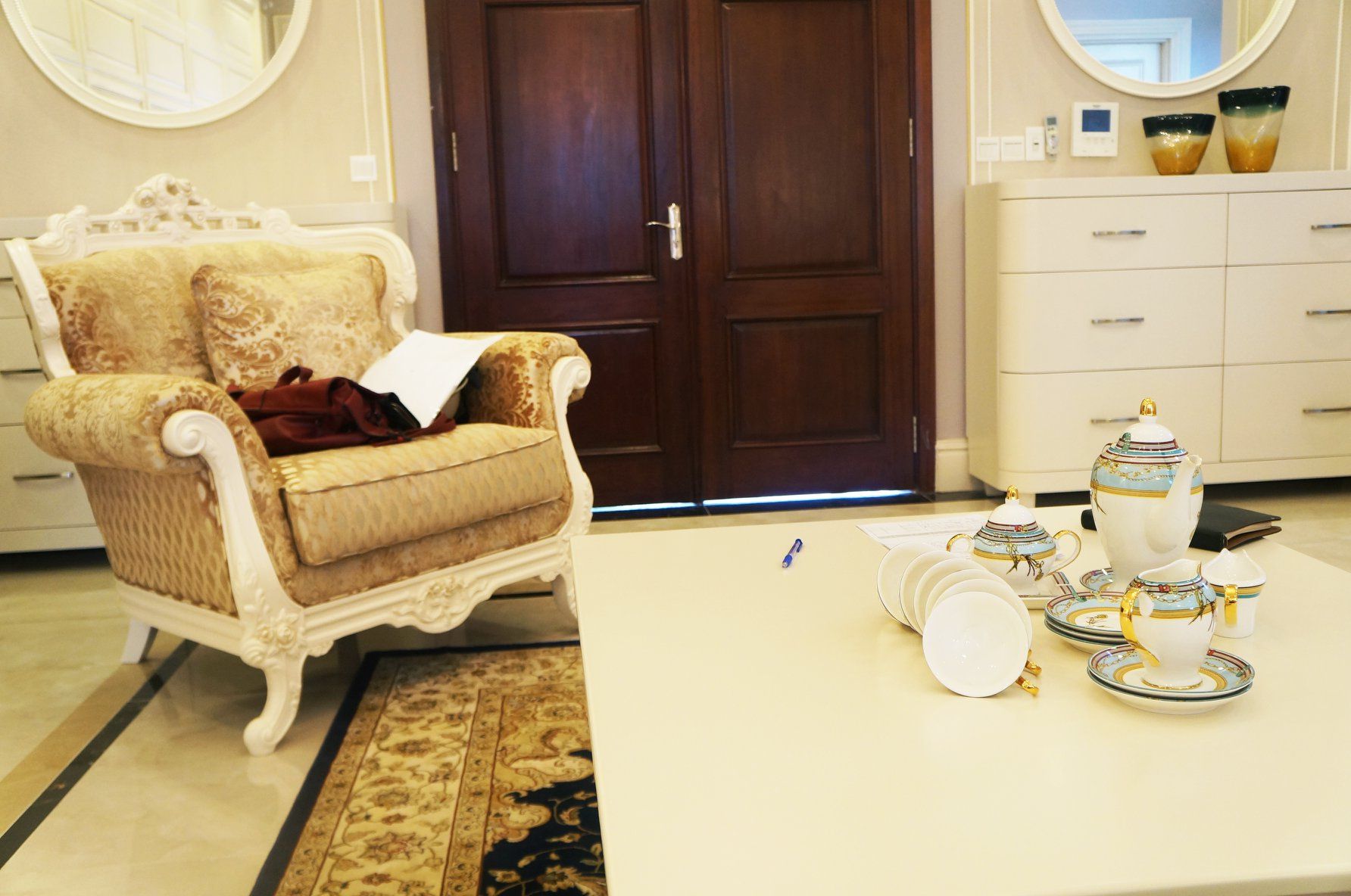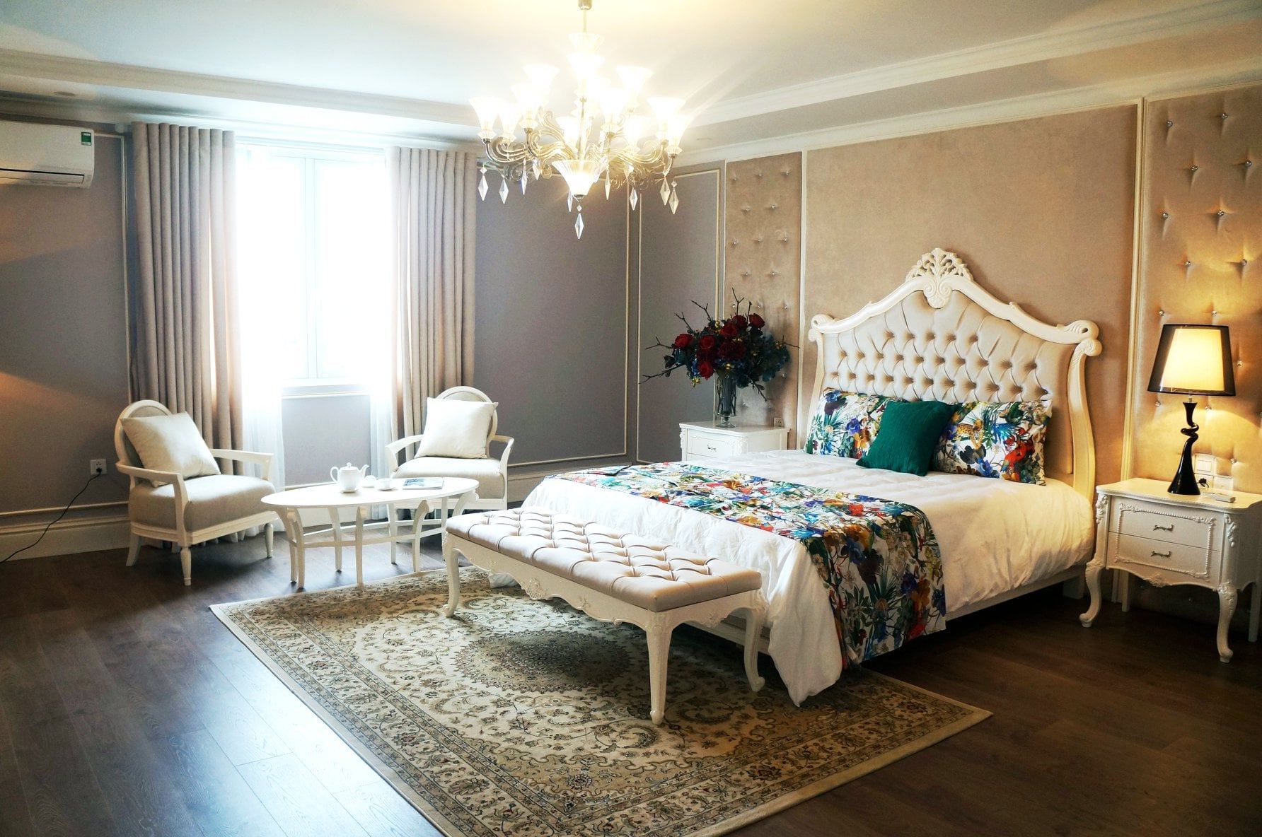 Biệt thự được thiết kế, hoàn thiện theo phong cách tân cổ điển, sử dụng nhiều tông màu, chất liệu, vật liệu hoàn thiện cao cấp.